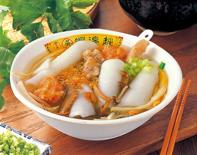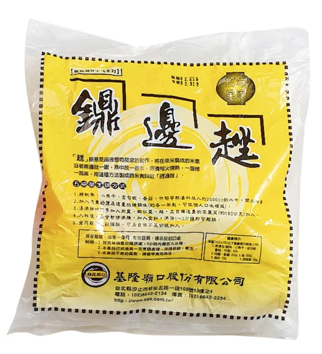 鼎邊銼趖加肉羹、蝦仁羹、金針、香菇、魷魚、小魚干、竹筍、金勾蝦、蒜頭酥、等多種上選的湯頭料。每種原料各5碗的份量包裝成鼎邊趖原料包裝,包裝上附有烹調說明,只要按照5個簡單步驟做,您家的鼎邊趖,會跟吳家鼎邊趖一樣好吃。